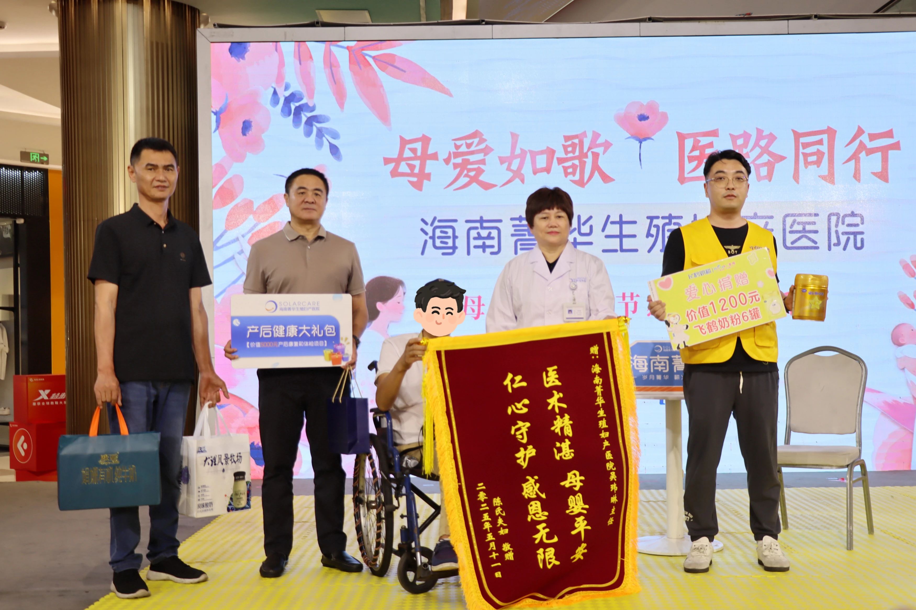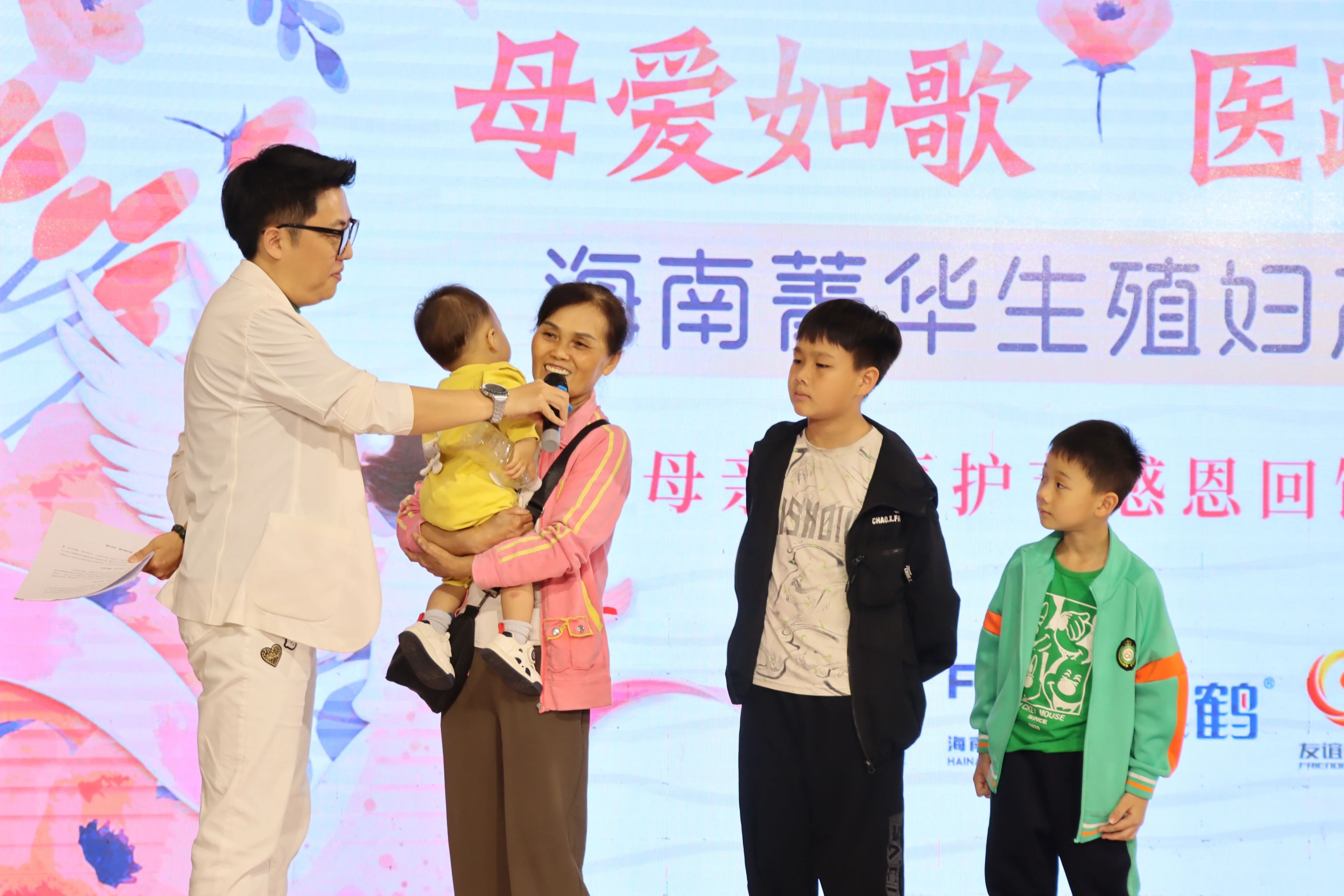 此次活动中,社会各界也展现了对母爱精神的支持。海南菁华生殖妇产医院、黑龙江飞鹤乳业销售有限公司、海南欧耶食品贸易有限公司、海口市辽宁沈阳商会的爱心代表纷纷走上舞台,为特殊家庭陈先生一家送上暖心慰问礼品。这些爱心礼物不仅是对医护人员辛勤付出的肯定,更传递着社会各界对这个三口之家的关怀与扶持。